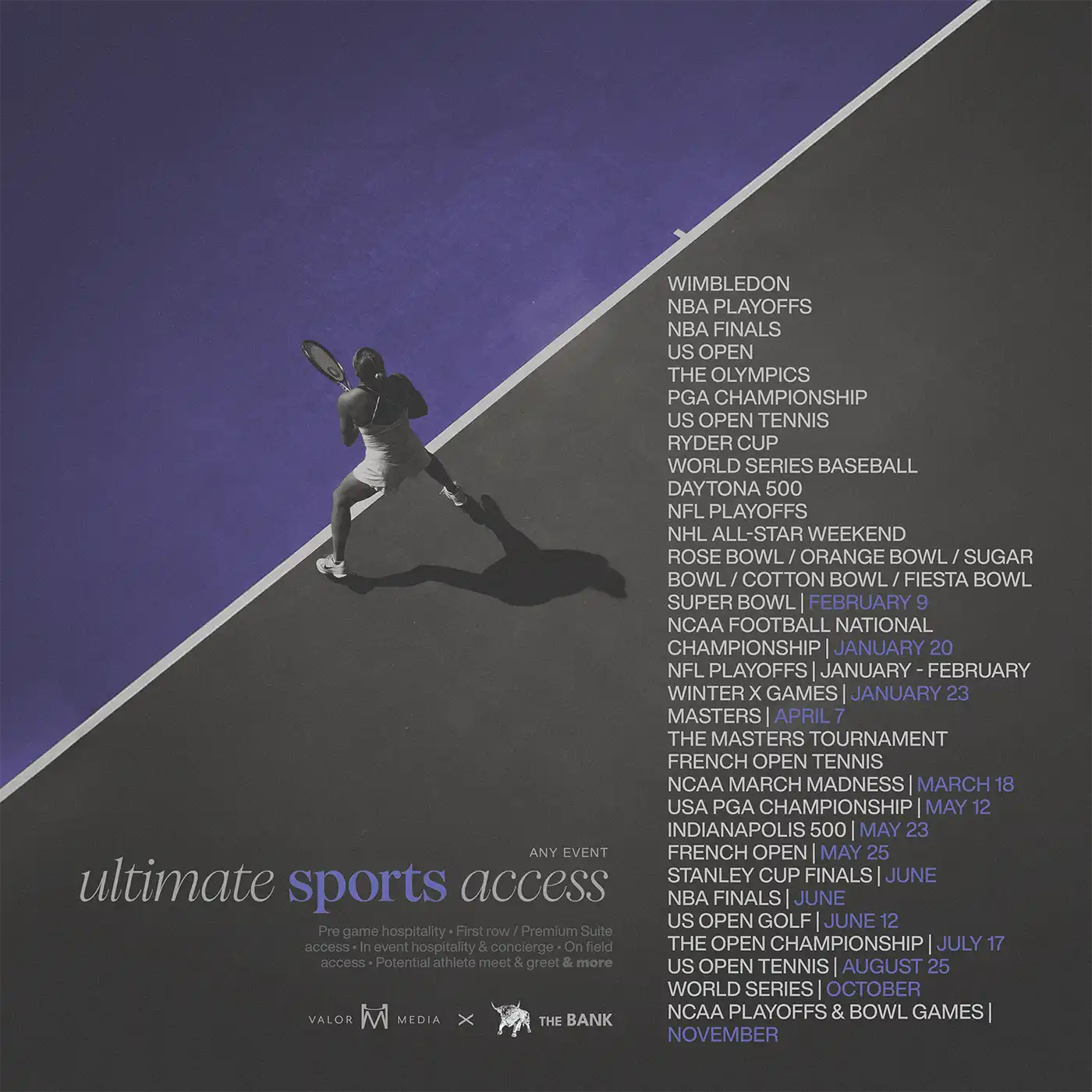 APEX is the arena of sport at its highest frequency. The moments that define eras. The stages where legends are crowned and history is written in real time. From Centre Court at Wimbledon to the thunder of the Kentucky Derby and the global spectacle of the Super Bowl, APEX offers access to the world’s most coveted sporting events—curated with precision, hosted with intention, and delivered at a level reserved for the few who move differently.