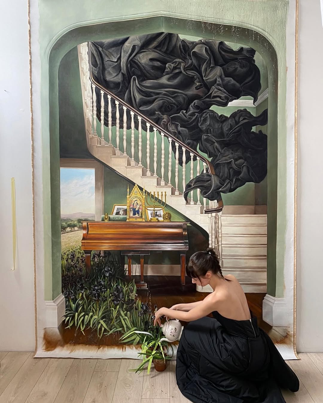 Her paintings are often described as Imaginative Realism—a term that fits not only her visual language, but her philosophy of living and creating. A commitment to engaging imagination deeply enough that philosophical meaning emerges organically.